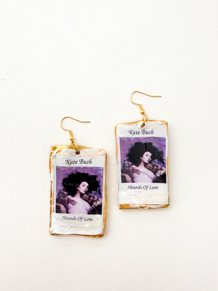 Inspired by Stranger Things these Kate Bush Cassette Tape Earrings are handmade with love from polymer clay and carefully hand-painted and embellished. Lightweight and one of a kind they capture iconic 80s nostalgia with a music-lover’s twist.